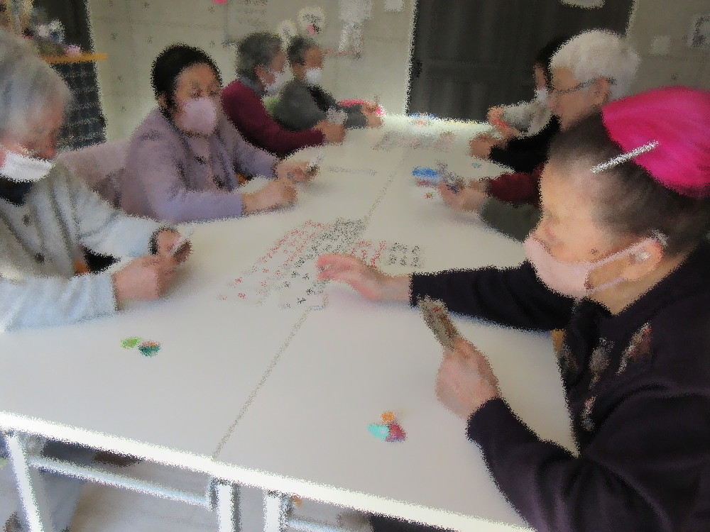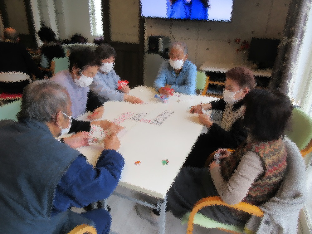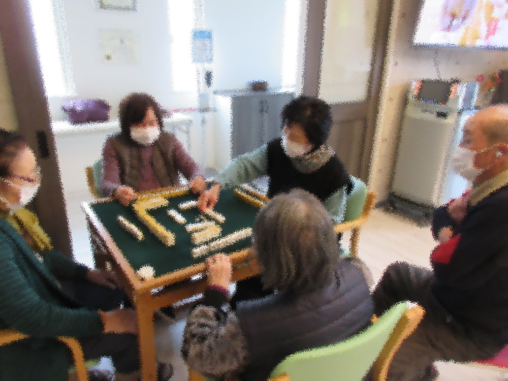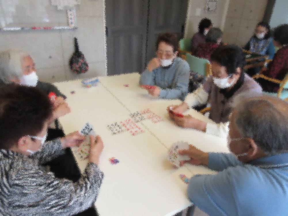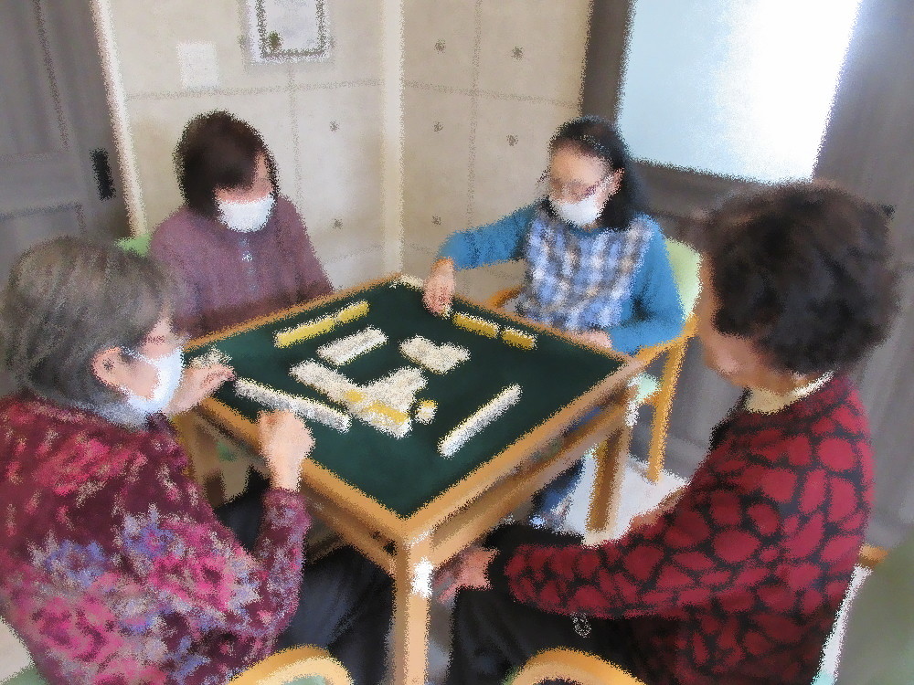 午後からはいつも通りの麻雀・トランプ・切り絵に分かれて活動されており、