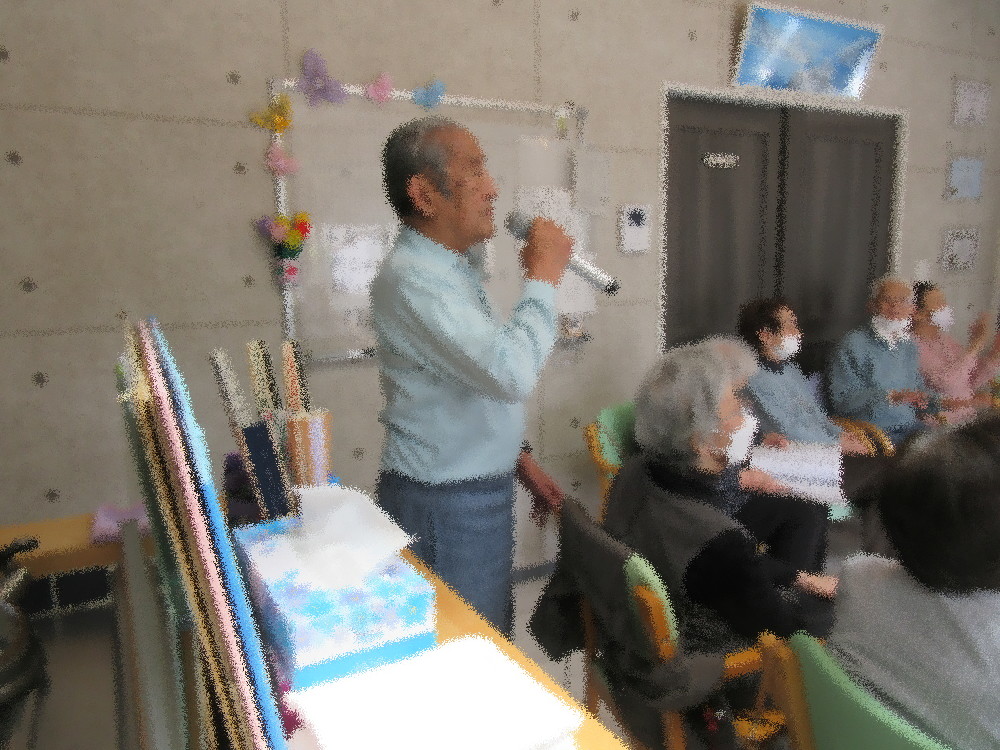 カラオケタイムは「ふるさと」をみなさんで合唱してから始まりました。