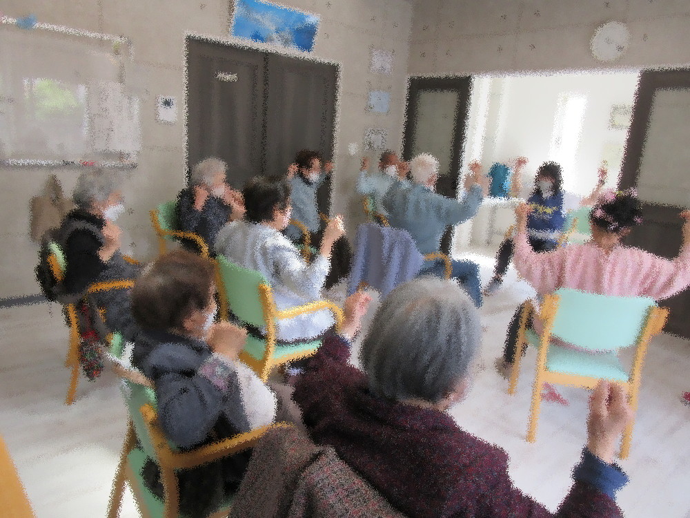 サロンに到着してから体操の時間までゆったりと過ごされていたみなさんが社長の一声でスッと姿勢を正し体操モードに入ります。
