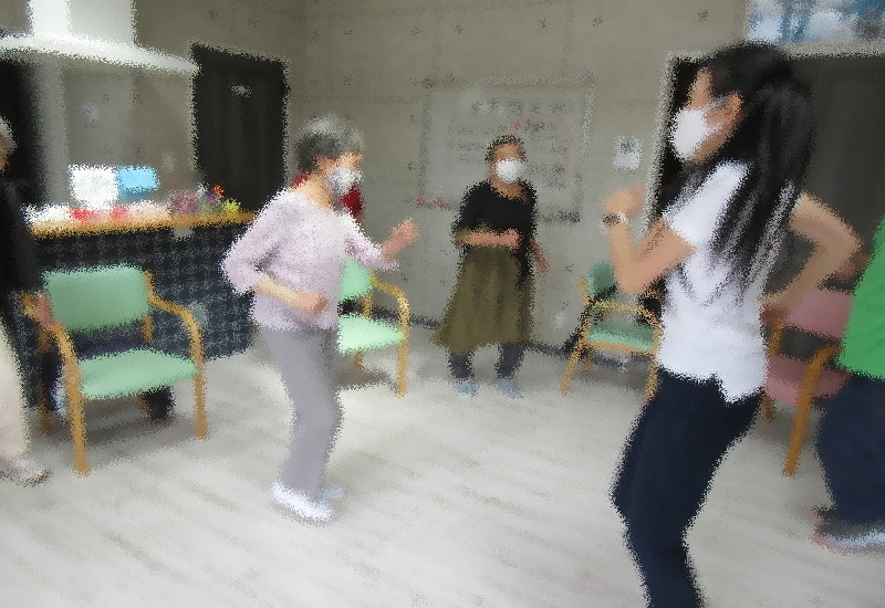 続いて、ステップダンスは、以前よりやっていた 前・横・後ろ のステップに新たに足踏みを追加して難易度アップ★ 笑顔で声を出しながらステップされていました(^^♪