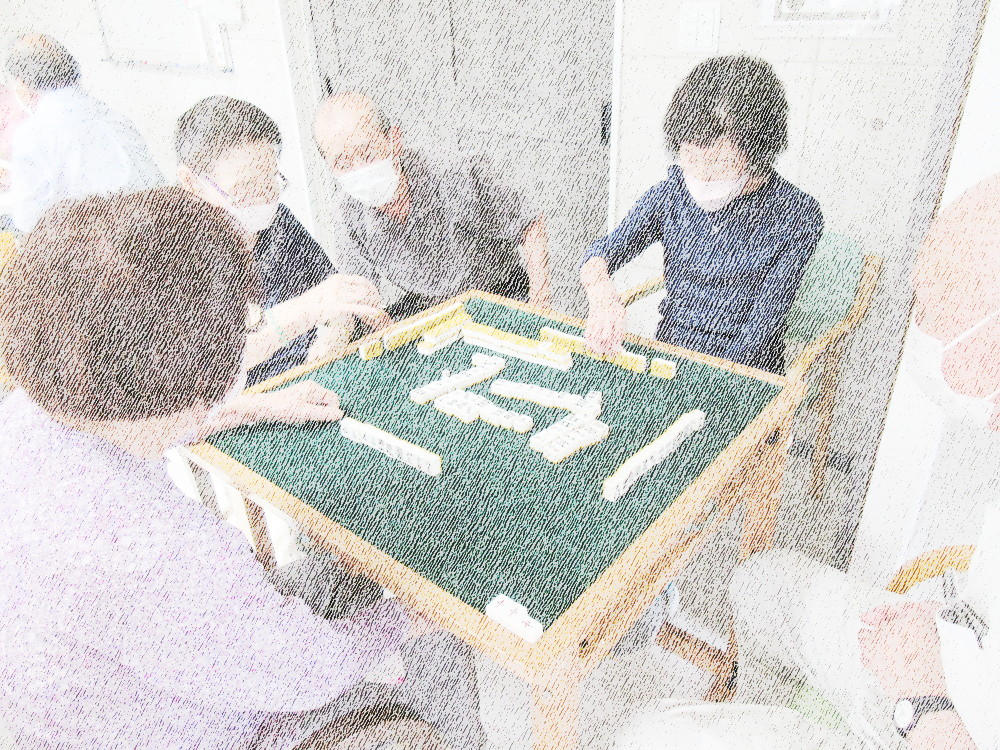 午後からのレクの麻雀組では前半と後半に分かれて交代しながら行っており、 みなさんで楽しく麻雀ができました。 いつもは見学が多い方も麻雀ができてとても嬉しそうでした!