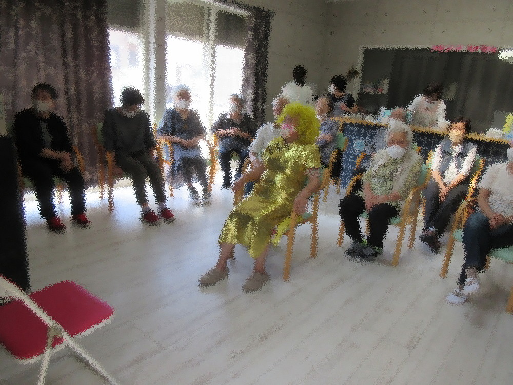 お楽しみのカラオケでは今月新しく利用されている方も1曲披露してくださり みなさん拍手で迎え、とても素敵な歌声に喜ばれていました。 また、中秋の名月ということもあり今回金色のお洋服で来てくださった方がおり みなさん来所から大喜びで今からハロウィンが楽しみと話されていました!