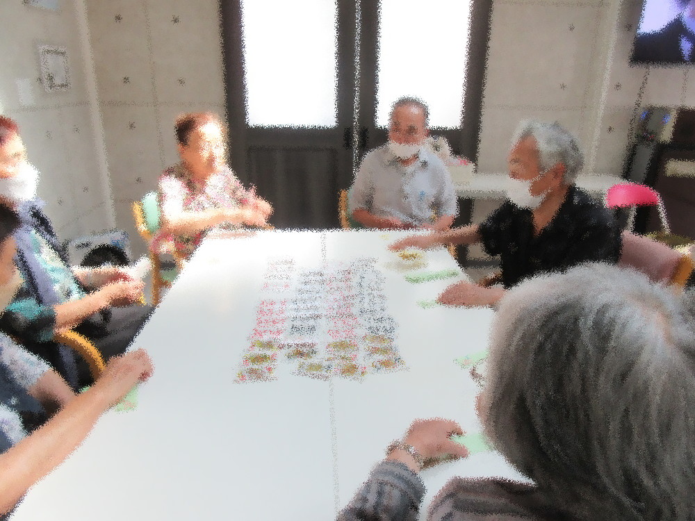 今回のふれあい交流サロン RUBYではストレッチから始め、体を伸ばしていきました。 十分に準備体操を行った後は立って足上げや足踏み、かかと上げなどをしていきました。 みなさん張り切っていて積極的に体操に取り組んでおり、体操の最後はスクワット! 大きな声でかけ声をかけながらスクワットをしていました! 脳トレではしりとりやかぶらないゲームをしました。 かぶらないゲームではみなさん県の名前を一つずつかぶらないように言っていくゲームで ヒントを出し合いながら答えることが出来ました!