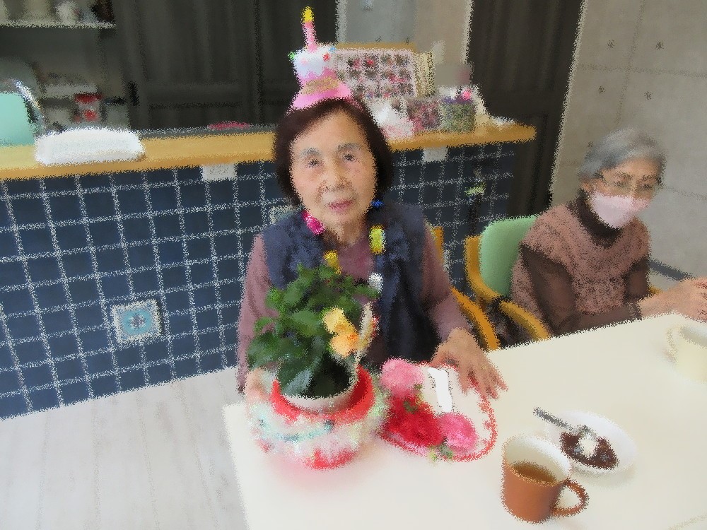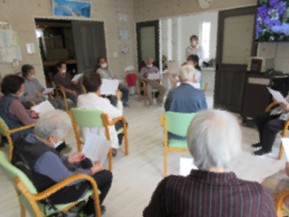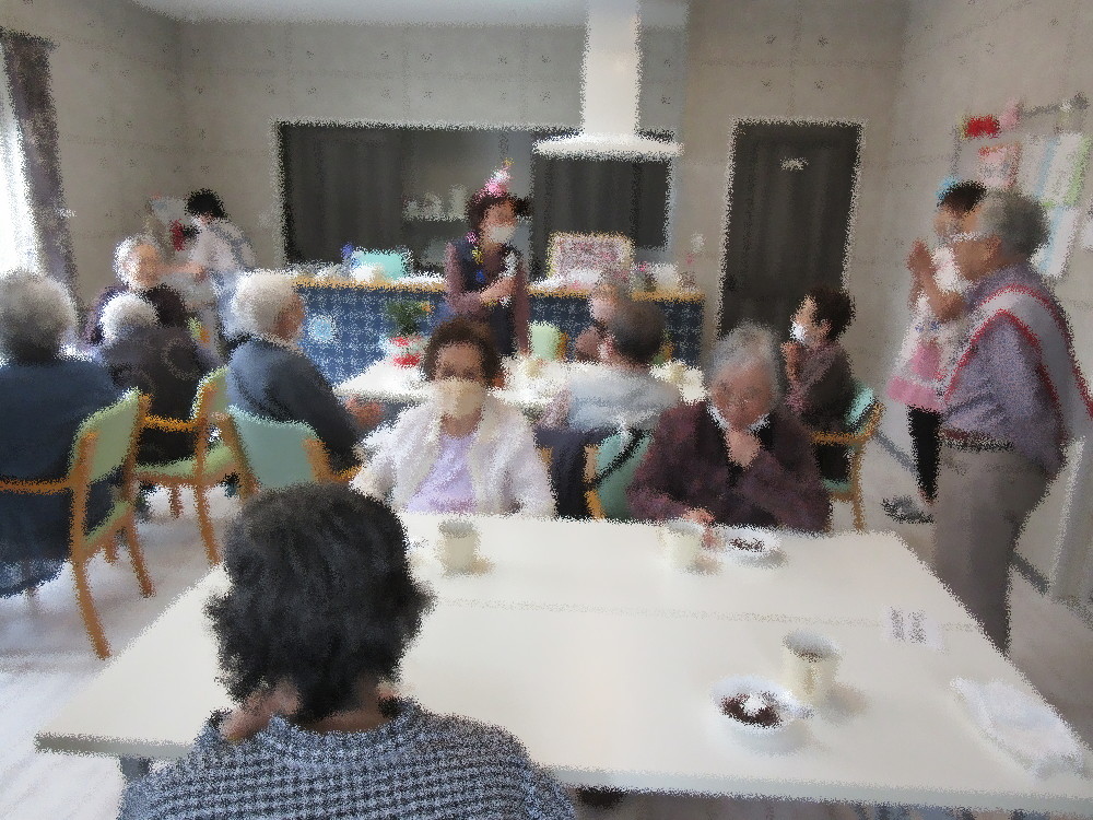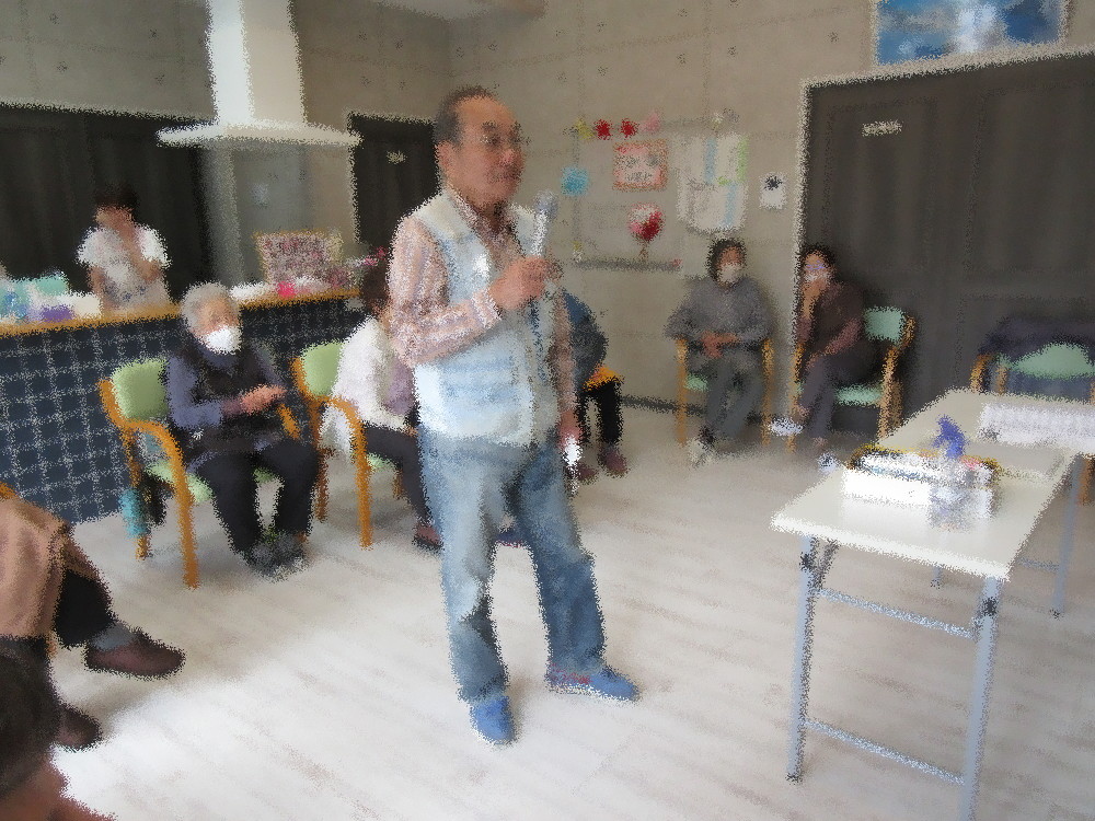午後からは3組に分かれてトランプを行い、七並べやババ抜き・罰ゲームを楽しまれていました。 本日は早めにおやつの時間にして5月の誕生会を行いました。 今月は1名の方が誕生日を迎えられ、みなさんからお歌とお祝いの言葉のプレゼントをもらい、 とても喜んでくださってお礼の言葉と簡単なスピーチをしてくださいました。 おやつの水ようかんも好評でみなさん甘いものが好きな方が多かったです。