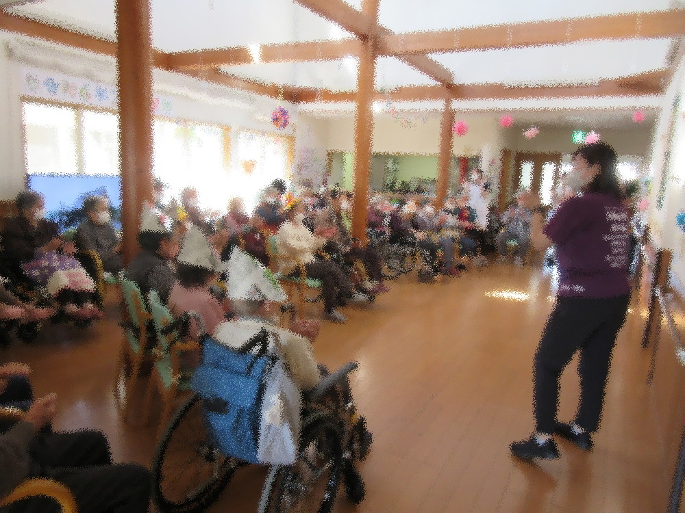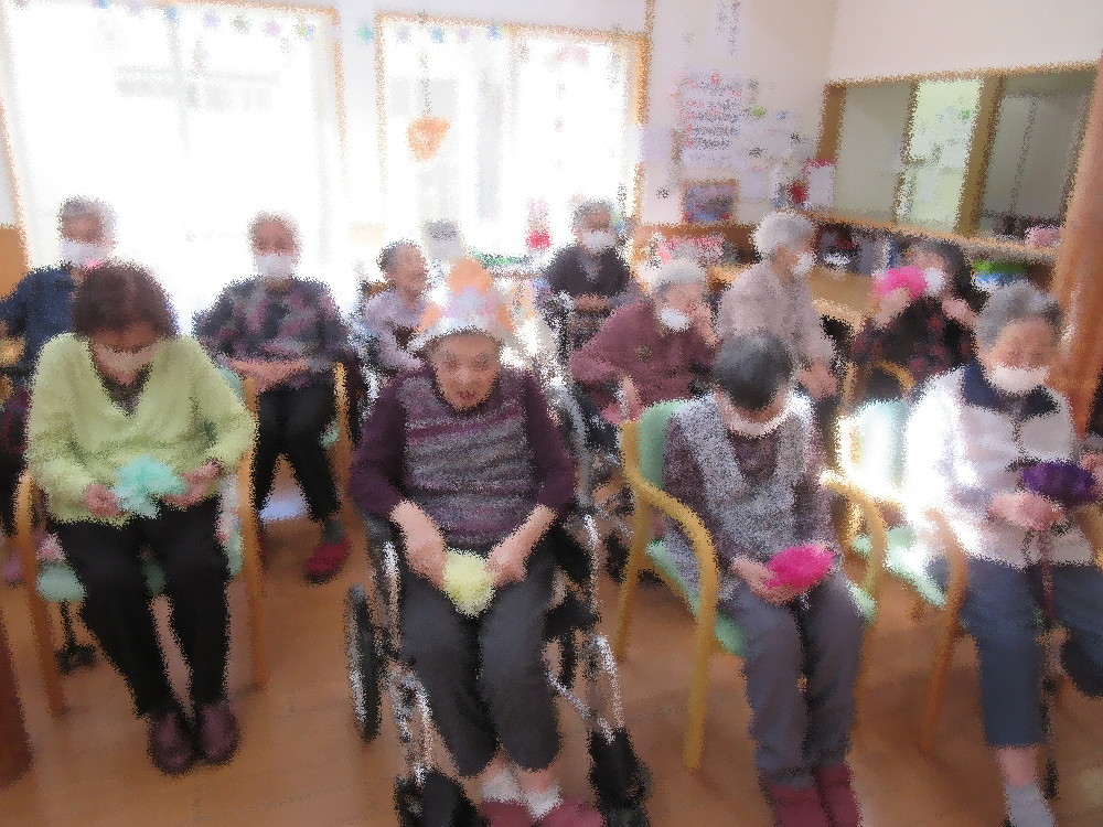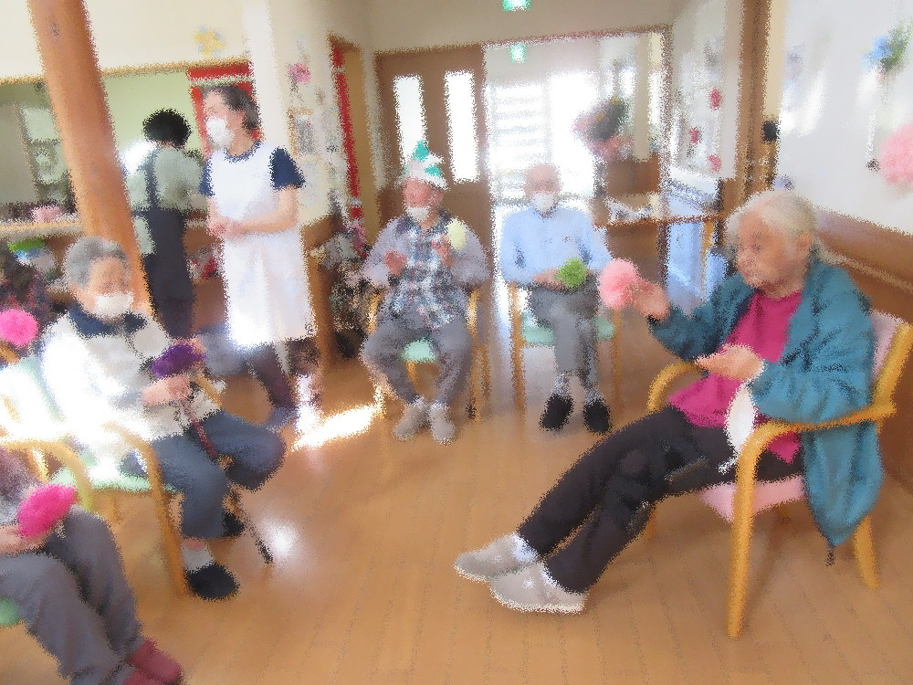 今月はグループホーム・小規模多機能ホーム合同で5月の誕生会をしました。 まずは歌謡体操の「東京のバスガール」と「高原列車は行く」に合わせて体を動かしていき、 みなさん体操やレクの時間によく踊っている曲なので一緒に歌いながら2曲続けて行っていました。 体操のあとは今月誕生日を迎える方の紹介をし、ハッピーバースデーの歌でお祝いしていき、お祝いされた方からもお礼の言葉も頂きました。 その後は「東京音頭」をみなさんで踊りました。 踊りが得意な方や一緒に踊ってくれる方も前に出て職員と踊り、 見ている方々は振り付けを真似したり「ヨイヨイ!」と合いの手を入れて盛り上がっていました! 最後はみなさんで「こいのぼり」・「せいくらべ」・「みかんの花咲く丘」を合唱して終わり…と思いきや、 母の日が近いのでペーパークラフトが得意な事務員より女性の利用者様にプレゼントをお渡ししました。 みなさんとても喜ばれ、その後のおやつや夕食の時間も机に飾って眺めていました! 男性の利用者様は来月の父の日にもあるのかな…と今から楽しみにされていました!