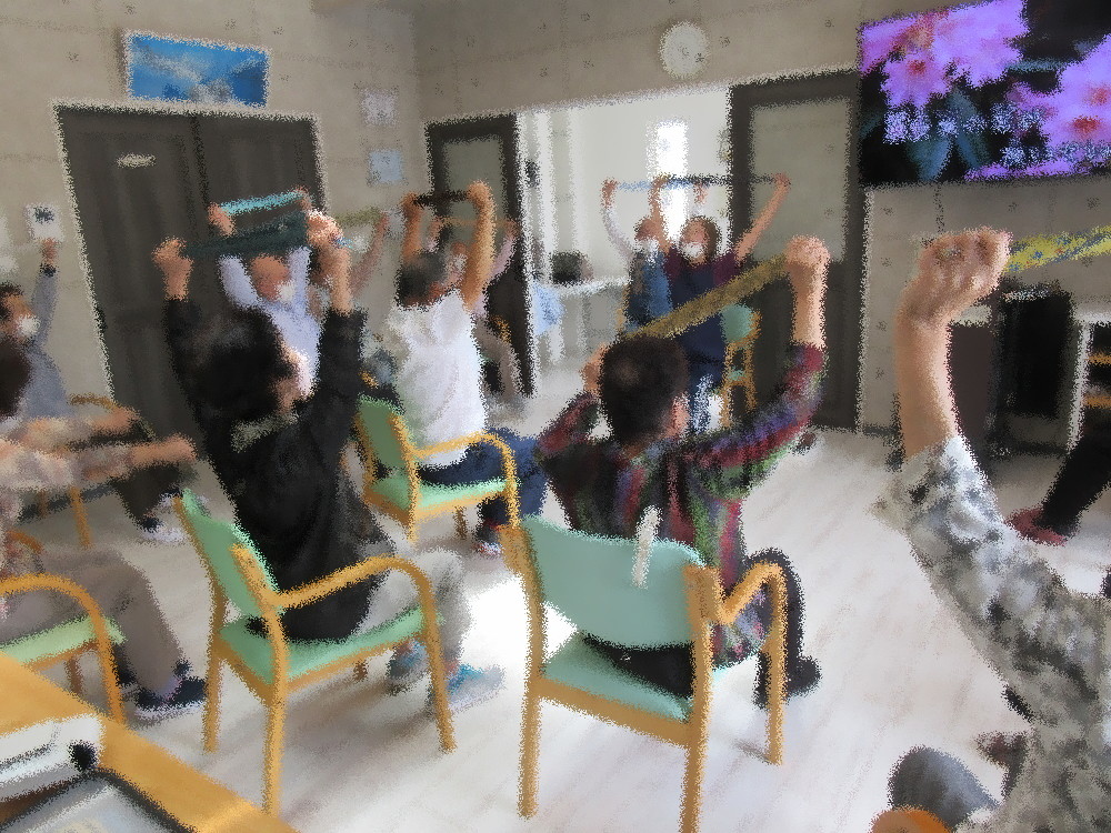 本日のサロンではストレッチから始まり上から順番に体を動かしていきました。 後半には筋トレも取り入れ、椅子に座ったままお尻で歩いたり足上げをキープしたりと じんわりと効いてくるような筋トレにみなさん「けっこうきついね」と話しながらも頑張っていました! 最後はネクタイを使って体操をしていき、ネクタイをピンと張った状態での腕上げやひねりで更に体を伸ばしていきました。 まだ寒さを感じる日もありますが体操をするとすぐに体が暖まり、じんわりと汗をかくようになってきたのでしっかり水分補給をしていきました。