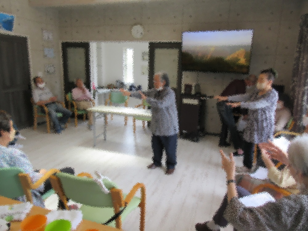 本日の午前の体操では全身の運動で体をほぐしていき、 肩周りのストレッチでは「海」の歌に合わせて平泳ぎやクロールで泳ぐフリをしていきました。 座ってだけでなく立ち上がって足上げやかかと上げ、座ってから呼吸を整えながら指先の体操もしていきました。 後半は丸くなって都道府県をあげていくゲームをしました。 本日は13名の出席なので2周分被らないように上げていき、他の方からのヒントもあって見事回しきることが出来ました!