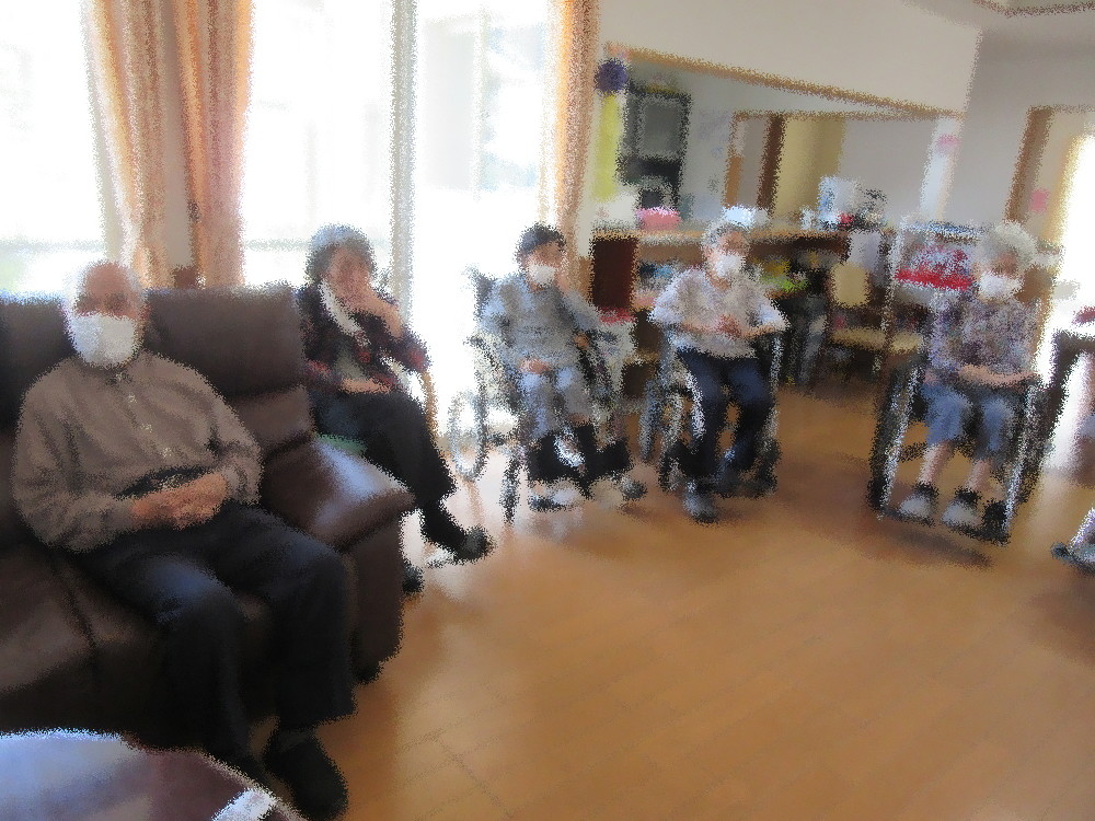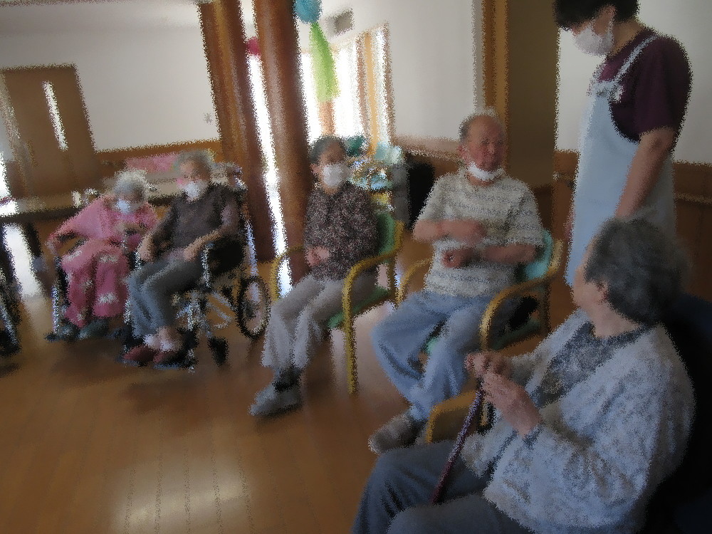 小規模多機能ホームでは今月3名の方が誕生日を迎えられます! まずは歌謡体操で体を動かしてから誕生者をお一人ずつ紹介し、ハッピーバースデーの歌でお祝いをしていきました。 みなさんからの「おめでとう」の言葉に「ありがとうございます。」と微笑みながらお礼を言われていました。 また、翌日が父の日ということもあり男性の利用者様に、 手作りの黄色いカーネーションとネクタイをモチーフにしたペーパータグをプレゼントしました! 嬉しそうに受け取られ胸ポケットに大事そうにしまわれていました(*^_^*) その後はみなさんで「かえるのうた」・「あめふり」・「かたつむり」を合唱し、 職員による「瀬戸の花嫁」と「アンダー・ザ・シー」のダンスを見ていきました! 手拍子をしたりポンポンを持って真似して踊ったりと盛り上がっており、 「アンダー・ザ・シー」ではアンコールがあって2回踊っていました! 梅雨入り前の暑さにも負けない盛り上がりで今月の誕生会は終わりました♪