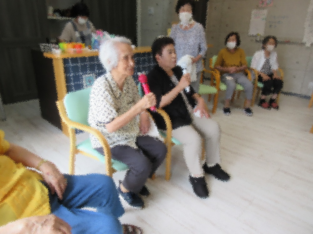 先日行われた銀河祭に参加された方が数名いらっしゃり、とてもよかった・楽しかったと話されていました。 カラオケ大会に参加された方を素晴らしかったと褒めたり、盆踊り上手だったとお互いに感想を言い合い、 特に間近で見るお囃子や跳ね太鼓が迫力があってよかったと嬉しそうに言っていました。 今回参加されなかった方もみなさんの感想を聞いて次回があれば参加してみたいと話していました。