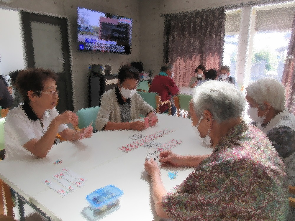 午後からはトランプと麻雀にわかれて活動しました。 初めての方はトランプに参加し、隣に着いた方がルールを教えながらみなさんで七並べを行っていました! 麻雀組も7名と大人数で順番に変わりながら何戦かしていました。