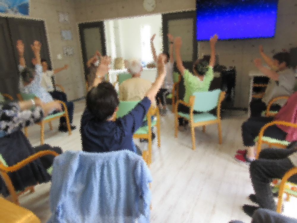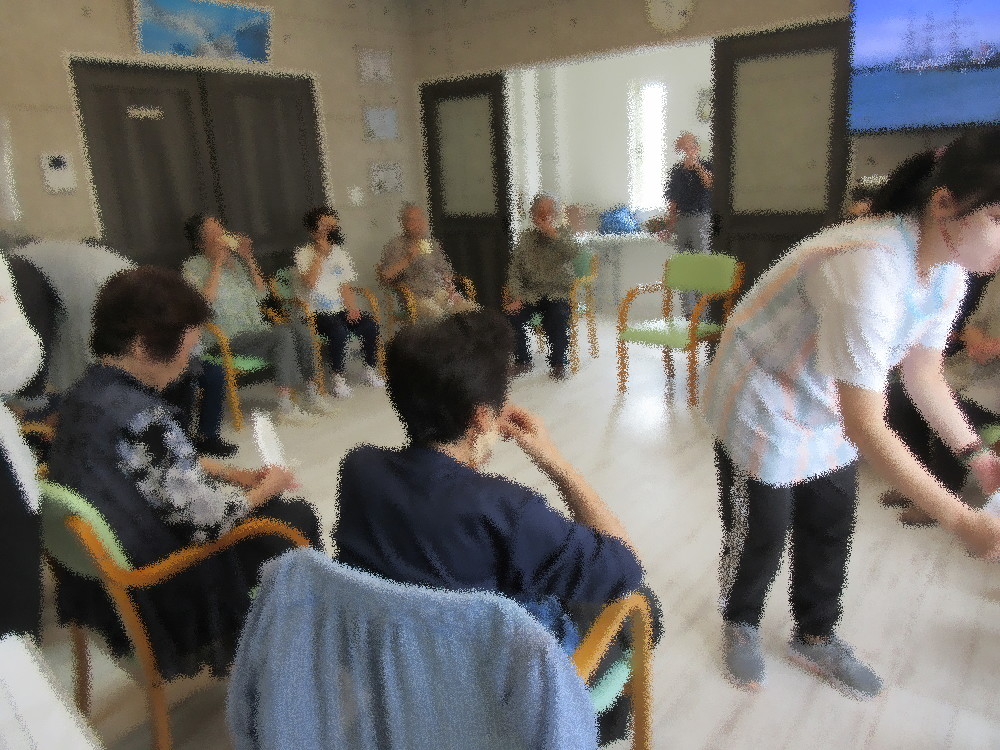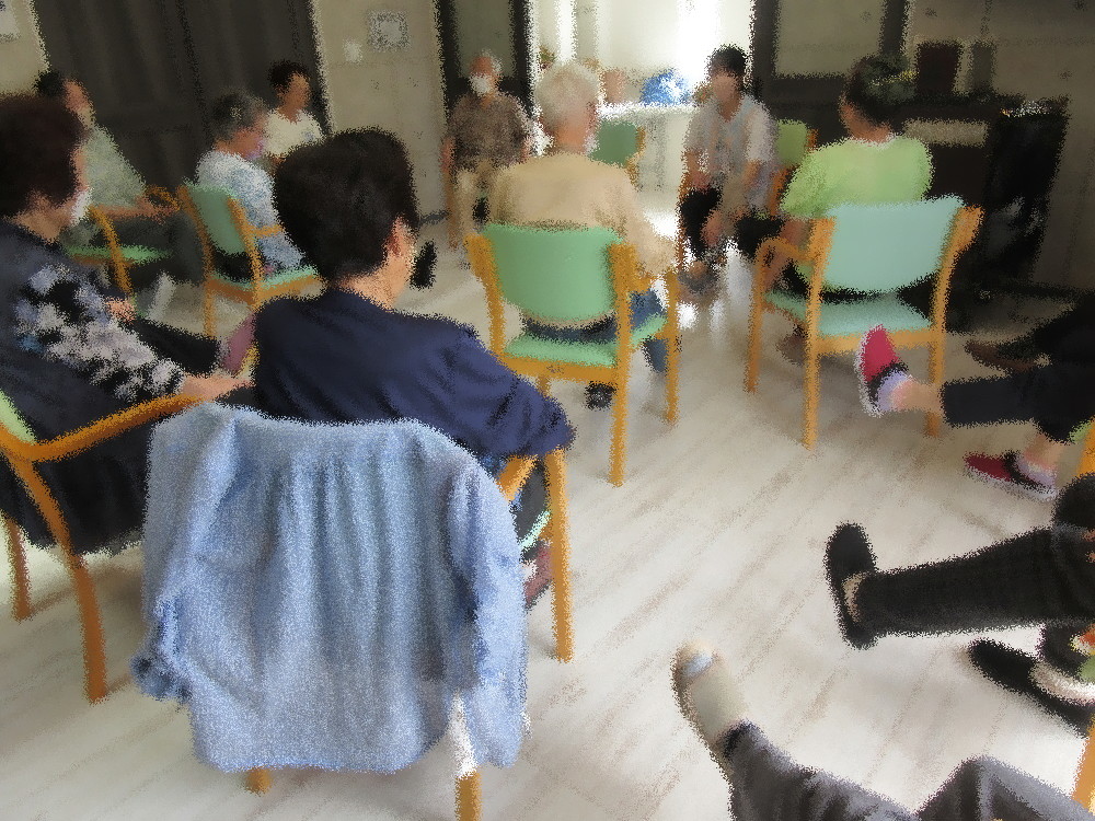 本日のサロンではいつも通り全身のストレッチから立ち上がってかかと上げや足踏みをしていきました。 座ってからも足踏みで体を動かしていき3の倍数で拍手をしたり、5の倍数で頭の上で拍手をしていきました。 その後は呼吸を整えながら脳トレ体操に取り組み、膝の上で右手がトントン・左手がスリスリと違う動きをし、 スタッフの声かけで左右入れ替える体操や、前がチョキ・胸がグーで交互に入れ替えていく体操をしました。 みなさん間違えることはありますが明るく前向きに体操に取り組まれていて最後までやりきっていました! 脳トレ体操のあとはみなさんの顔が見えるように円になって座り、「最近で楽しかったこと・嬉しかったこと」を一人ずつ発表していきました。 親しいご友人と会ったり、美味しいものを食べたなど色々なエピソードを教えて下さいました!