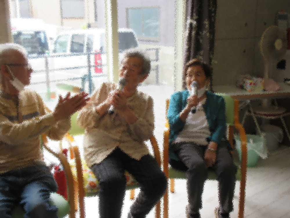 カラオケタイムではみなさん思い思いの曲を歌われており、今回は珍しい組み合わせが見られました! 最初の頃は人前で歌うのは苦手だと話されていた方がいまではみなさんの温かい雰囲気の中で立ち上がって大きな声で伸び伸びと歌われていました!