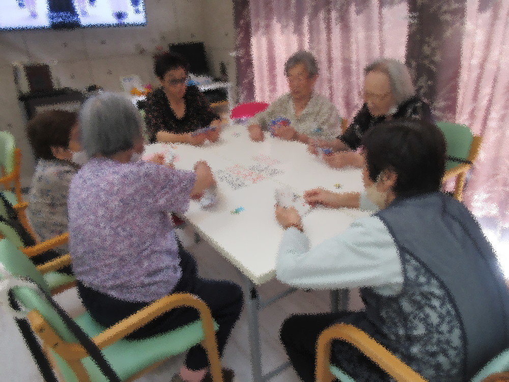 午後からは2組に分かれてトランプをしました。 七ならべとババ抜きをしていきましたが、いつも元気な方がおやすみだったので少し寂しさもありました。 みなさんも「静かねえ」と残念そうに話されていました。