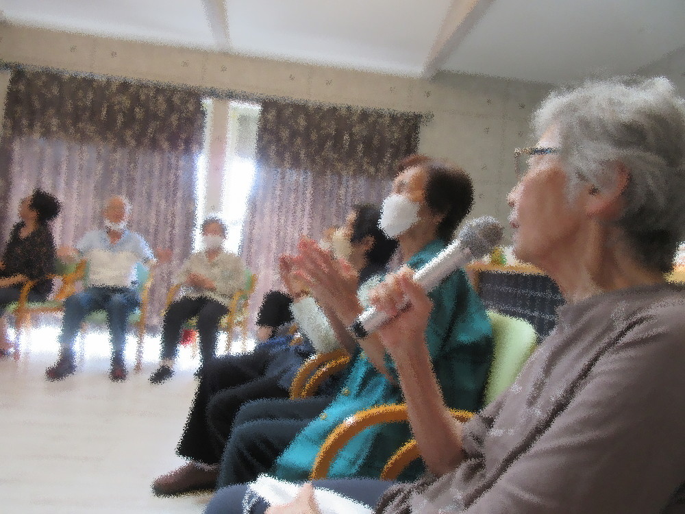 カラオケタイムでは「もみじ」を合唱してからスタートしました。 このカラオケタイムを楽しみにしている方が多く、 それぞれ1・2曲歌われ聞いている方も手拍子をして盛り上がっていました!