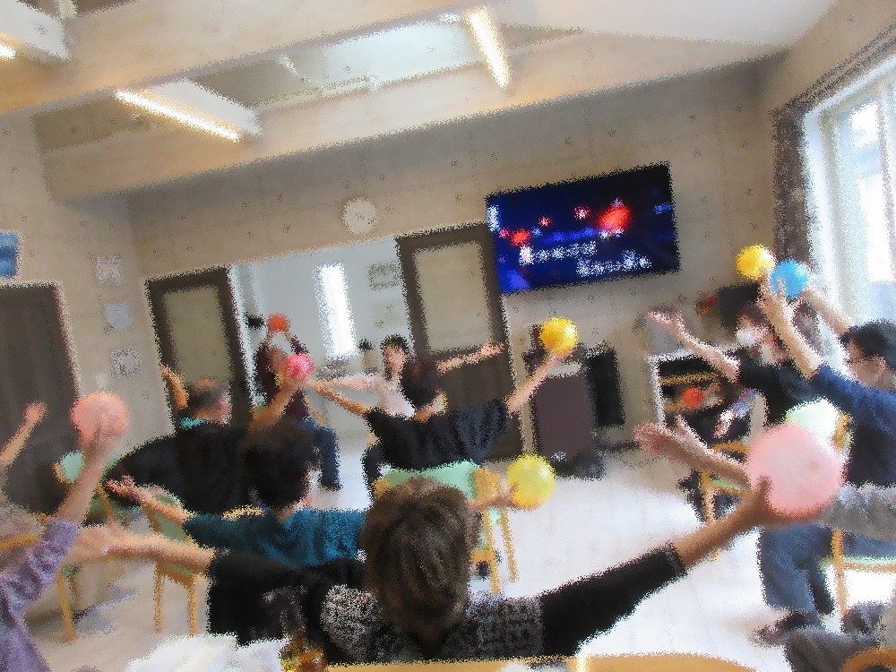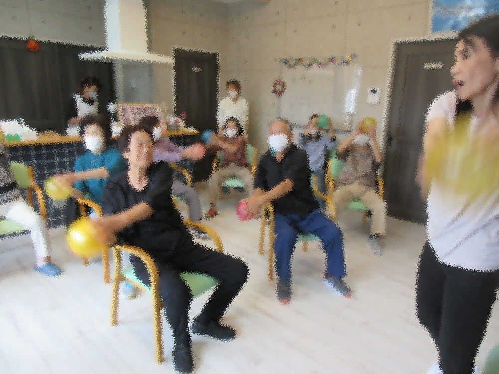 今回のサロンでは新しく1名の方が参加されました! とある利用者様のお友達らしくサロンを紹介してくださったそうでみなさんの前で自己紹介をしていくと、なんとお知り合いが沢山いらっしゃいました! みなさん「久しぶりだね~!」と声をかけており、一人ずつ自己紹介をしていくと「○○で一緒だったの!」とエピソード付きでお話しされていました。 体操が始まると元気いっぱいに参加され、ストレッチやボールを使った体操・脳トレ体操にもスムーズに取り組まれていました。 みなさんも毎週行っているので体操には軽々とついて行き余裕も見られました。 脳トレでは少し戸惑ったり、わからかくなって笑う姿も見られましたが職員のサポートもあり最後までやりきることが出来ました。 最後はみなさん立ち上がって音楽に合わせてノリノリでステップを踏んだり足踏みやスクワットをしていきました! これから涼しくなっていくので体操も体を動かす内容を増やし、体温を上げていきたいと思います。
