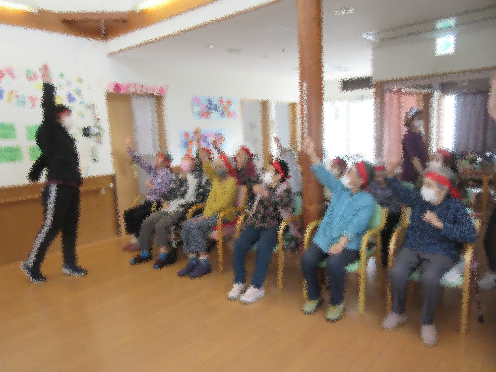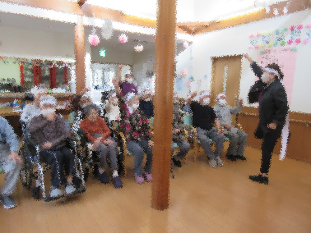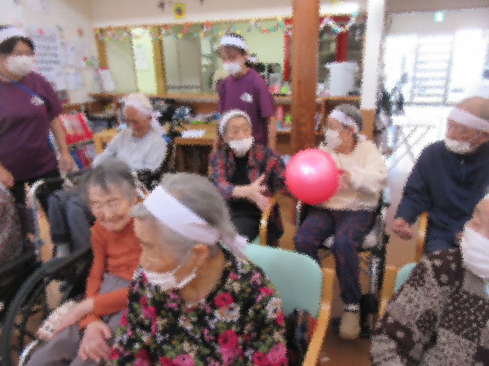 今月はグループホームと小規模多機能ホーム合同で誕生会と運動会をしました。 まずは誕生日を迎える方の紹介から。お一人ずつ紹介されみなさんでハッピーバースデーの歌でお祝いしていきました。 みなさんからのお祝いの言葉に「ありがとう」とお礼を言われ嬉しそうにされていました。