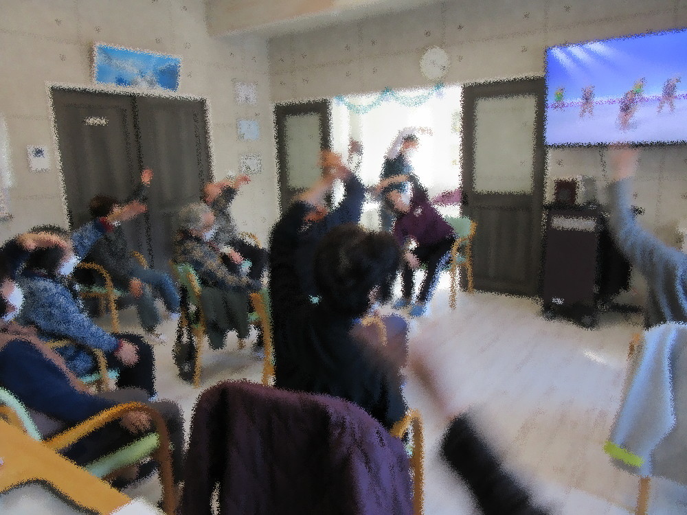 本日のサロンでは小規模の方から職員がきて体操を行い、まずはゆっくりとストレッチで固まった体をほぐしていきました。 元気なみなさんが今後もしっかりと歩けるようにと体操も足や指先を中心とした動きで積極的に取り組まれていました。 「グー・チョキ・チョキ・パー」の指先の運動では途中から足も加え、ちょっとした脳トレをしながら取り組んでいきました。 最後はラジオ体操と歌謡体操で全身を動かしていき、動ける方は立ち上がって体操をしていました。