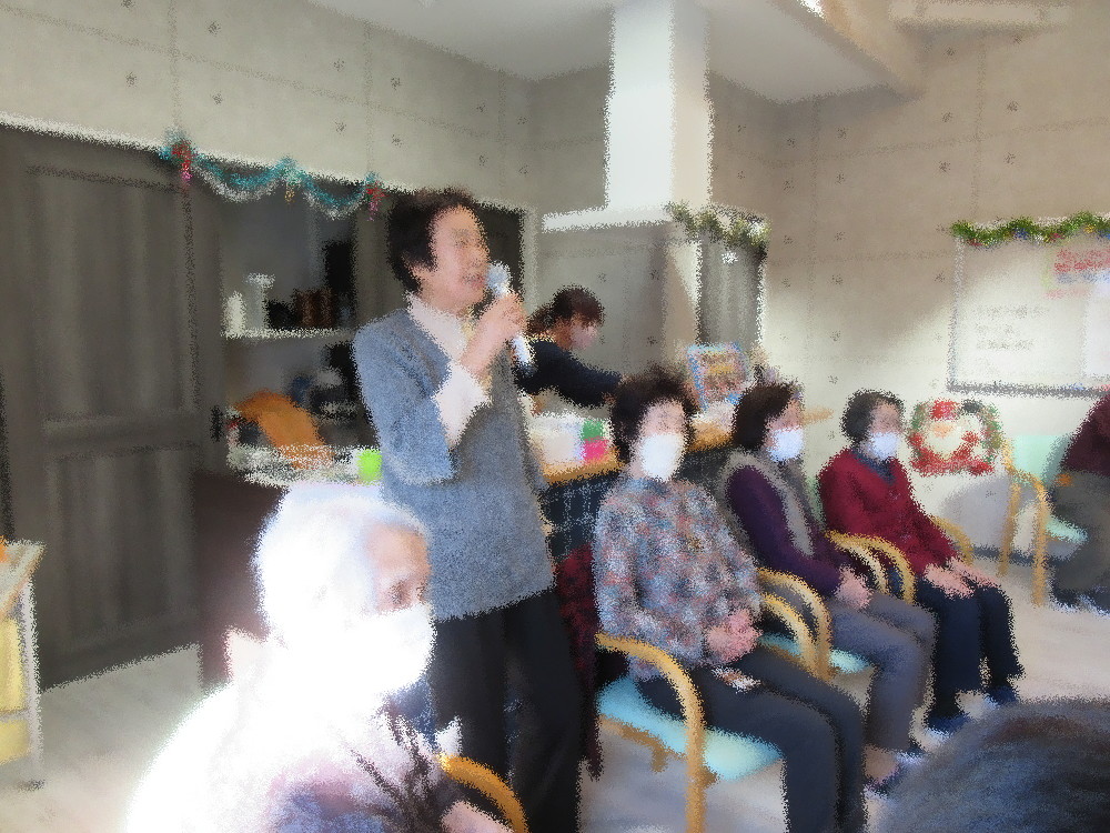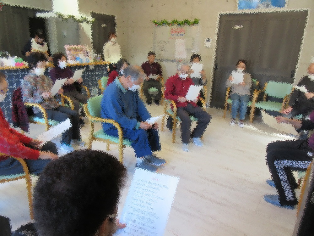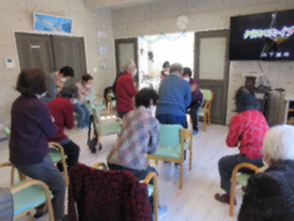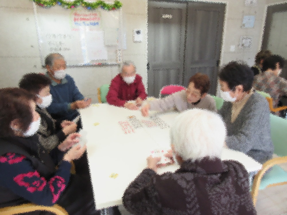 午後からのレクリエーションでは麻雀2組とトランプに分かれて活動されおしゃべりをしながら楽しまれており、 天気が良く、日当たりも良いサロンで穏やかな午後の時間を過ごされ、今年最後ということで一年の思い出に浸っていました。 「今年もありがとう、また来年もよろしくね」とお互いに挨拶をされて、「来年も元気に来なくちゃ!」と気合いを入れて帰られました。