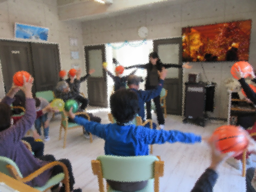 本日はせっかくなのでクリスマスソングに合わせてストレッチや体操を行っていきました! 体がほぐれ動きやすくなった後はボールを使って更に肩周りの体操をして行きました。 左右でボールを持ち替えていく動きも頭の上だったり胸の前だったりと場所を変えながら音楽に合わせて1曲分行っていきました。 そのあとは2列に並んで交互にボールを投げ、全員で30回を目指していきました! 惜しい時は何度かありましたが失敗しても諦めず続けることで51回成功させる事が出来ました! 最後に呼吸を落ち着かせながら「きよしこのよる」を合唱して終わりました。