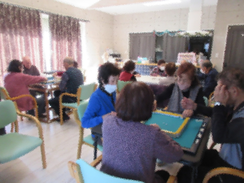 午後からは麻雀とトランプに分かれ、トランプ組では七並べとババ抜きを交代で遊ばれていました。 どの組もおしゃべりが盛んで特にトランプ組からは笑い声がよく聞かれていました。