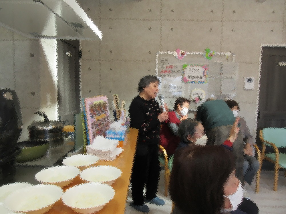 体操のあとは水分補給をしてから、今月誕生日の方が午後から用事があるとの事でしたので2月の誕生会をしました! ハッピーバースデーの歌をみなさんで歌ってお祝いしていき、プレゼントを渡しました。 とても喜んで下さりお礼の言葉と一緒に今後の目標を話して下さいました!
