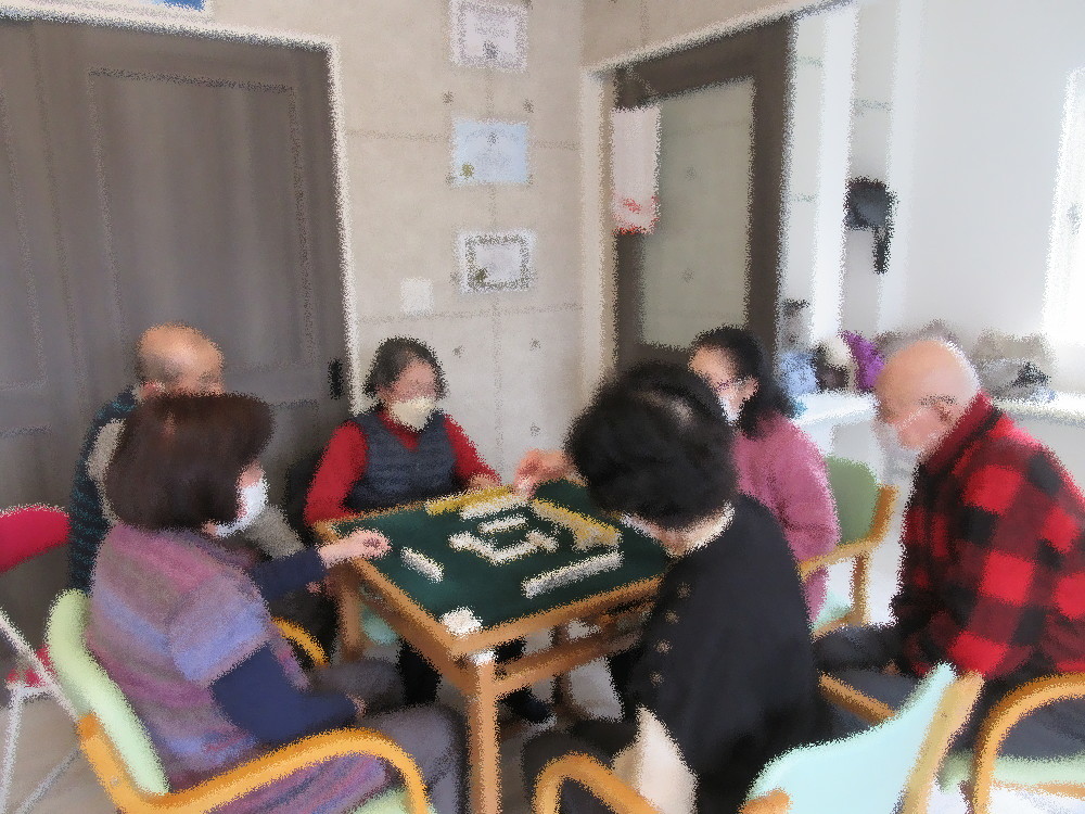 午後からは麻雀とトランプに分かれて活動し、 麻雀チームは人数が溢れてしまいましたがコーチとしてアドバイスをしながら観戦を楽しまれました。 トランプチームはトランプをしたりおしゃべりをしながらゆっくりと午後の時間を過ごされました。