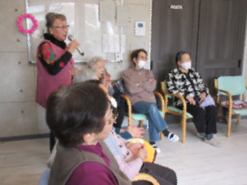 カラオケタイムではみなさんで「北国の春」を歌いました。 更にもう1曲「銚子音頭」を歌いたいとリクエストがあり、みなさんで歌っていきました! 中には知らない方もいらっしゃいましたが手拍子をして盛り上げていました。 その後はみなさんお気に入りの曲を披露して時間いっぱい歌われていました♪
