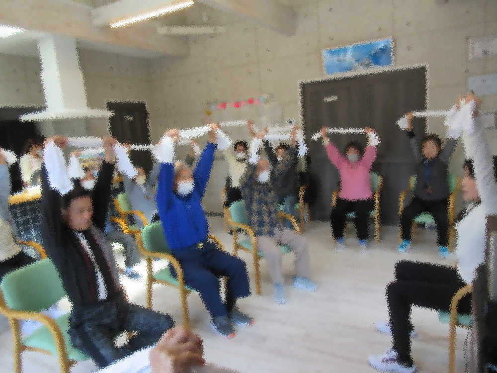 本日のサロンの体操は社長が行い、体操に入る前にまずは姿勢を整えるところから始まって座骨を立てて座ることを意識していきました。 お尻にある座骨から腰・背中・肩・首・頭と自分の背骨を感じ、十分に伸して正しい姿勢をとっていきます。 ストレッチも背骨を支える所を中心に行い、ゆっくりとリラックスしながら筋トレもしていきました。 後半になるにつれ少しずつ運動量を増やしタオルやボールを使った筋トレで更に鍛え、 しっかりと行えているか社長が一人一人回って確認していきました。 最後はアップテンポな音楽に合わせて足踏みとダンスエクササイズ! みなさんの知っている曲で中には口ずさみながら足を上げて元気に行っていました!