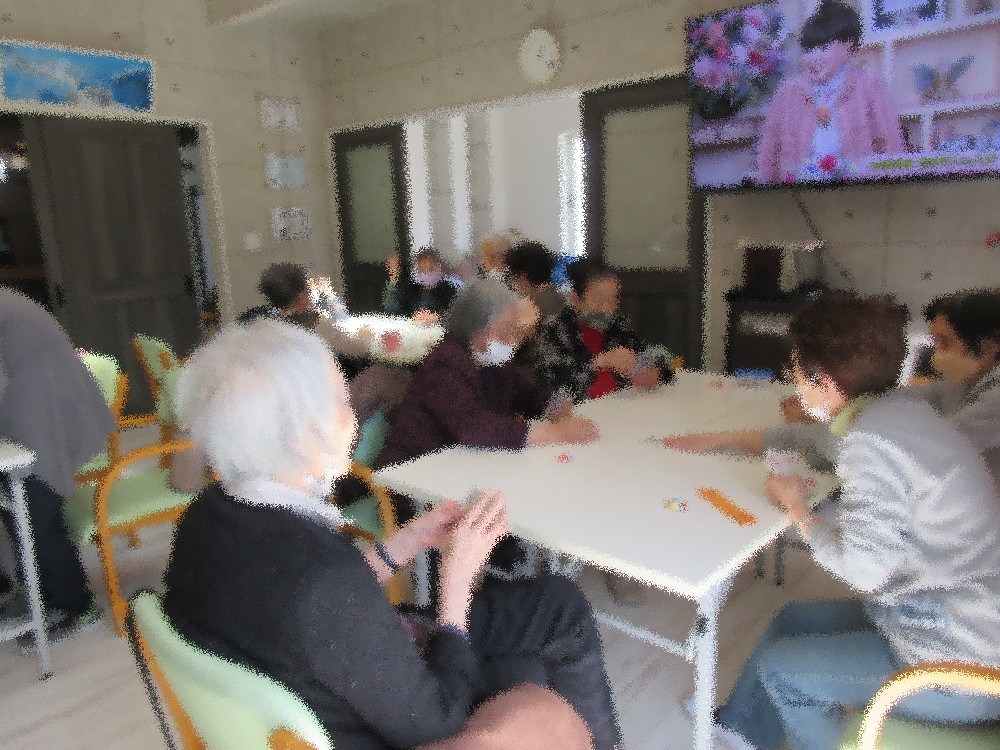 午後からは3組に分かれてトランプをして過ごしました。 どのチームもおしゃべりをしながらのゲームで大盛り上がりで、 おやつの時間まで楽しく活動し、おしゃべりは帰りまで続いていました(^o^)