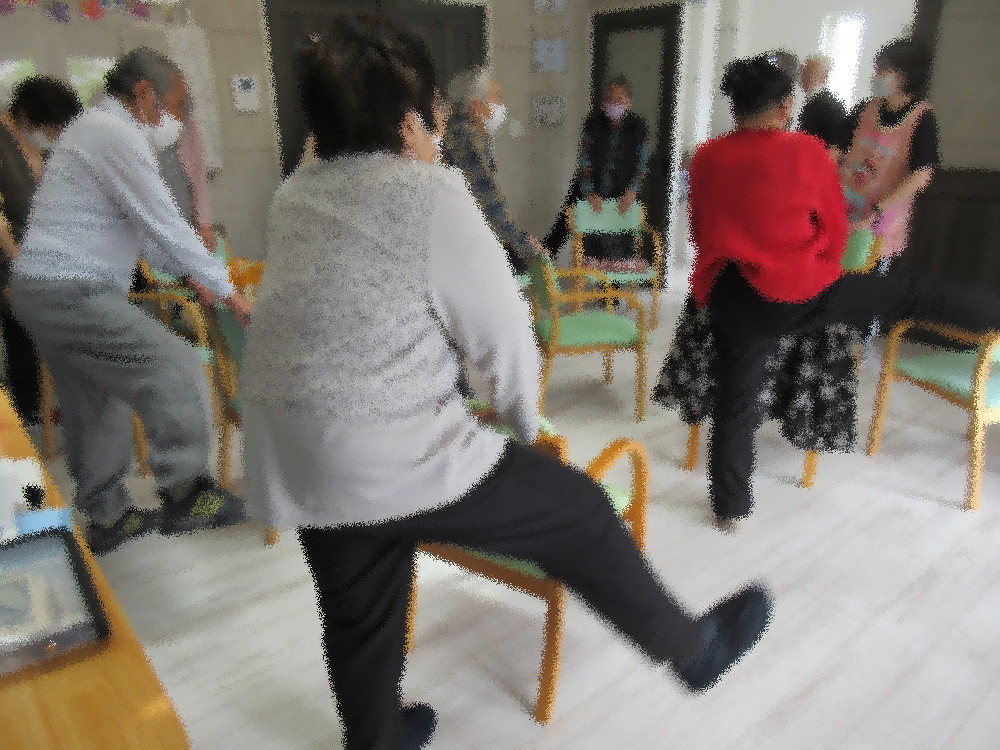 本日は1名見学の方が参加され、体操の前にみなさんに紹介しお互いに簡単な自己紹介をしてもらいました。 体操が始まるとみなさん大きな声でカウントしながらストレッチをしており、 見学の方もスタッフや周りの方の動きを見ながら積極的に体操に取り組まれていました。 首、肩、足と順番に動かしていき全身を十分にストレッチ出来たところで立ち上がって足上げをしました。 踵上げや足上げ、スクワットをこなし最後はみなさんの顔が見える様に円になって座り、 お互いのことを知ってもらうために「好きな食べ物」と「好きな事」を一人ずつ発表していきました!