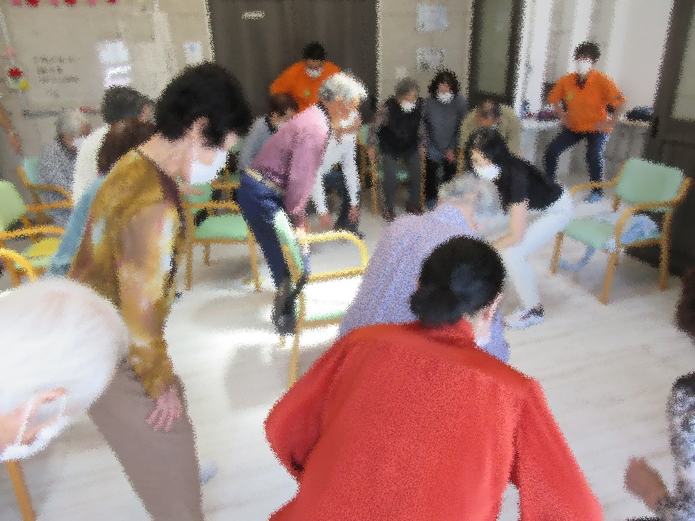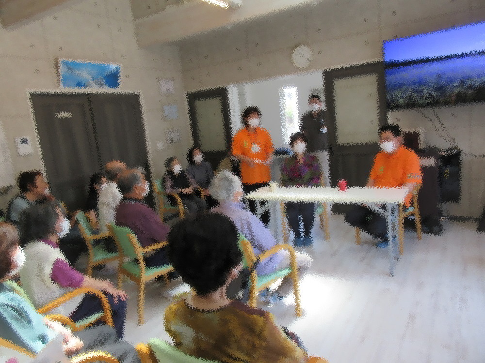 本日のサロンでは東部包括支援センターの方2名と銀河のオレンジサポーターが数名参加し、 認知症サポーター養成講座を開催いたしました。 最初は東部包括支援センターの方による「認知症について」の講習から始まり、 認知症の種類や症状・周りの人の対応・困った時にどのようなところに相談したら良いのかを 冊子を参考にしながらわかりやすく話してくださいました。 頭を使った後は社長による介護予防体操を行って行きました。 ゆっくりとストレッチで全身をほぐし動きやすくなったとろこで少しずつ運動量を増やしていき、 最後はアップテンポな曲に合わせてサイドステップのダンスエクササイズとスクワットをしていきました! 今回は少し短めになっていたので毎週ハードな体操をこなしているみなさんは難なくこなし余裕の表情でした! 水分補給をした後は職員による「高齢者のお友達同士で片方が認知症状があったら…」といった内容で、 カフェでお茶をする二人の会話劇を見ていきました。 一回目では同じ話をするAさんとしびれを切らし怒ってしまうBさんに 同じ話なんかしていないとAさんも怒り返し喧嘩になってしまいました。 二回目では 変わらず同じ話をするAさんに対してBさんは否定せずに話しを聞き、 「最近困っていることはない?」と尋ねます。 Aさんも気を悪くする事なく「私は初めて話すのに息子に同じ話ばっかり!と怒られる」と悩みを相談します。 本人に同じ話をしている自覚はないものの周りから言われてしまっている様子…。 そういう事はどこに相談したらいいのか悩んでいるAさんにBさんが「地域包括支援センターや銀河に相談するといいよ!」と教え、 そのまま一緒に相談へ行く事にした二人の仲良い姿で劇は終わりました。 劇を見た後は「周りに理解がある人がいるといいね」や「私も最近息子に怒られる…そこに相談したらいいんだ」といった感想がありました。 今回の講習を受けたみなさんには認知症について正しく知り見守る“認知症サポーター”になります。 特別な事をする訳ではありませんが周りにAさんのような方がいたときにBさんのように話を聞く存在になれるといいですね!