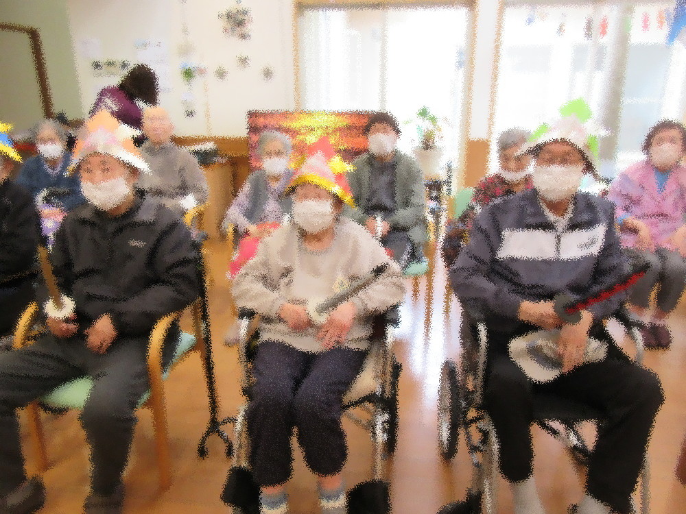 今月は4名の方が誕生日を迎えられ、5月ならではの兜と刀のおもちゃを持って記念撮影しました! 誕生会が始まるとまずは体をほぐす為にラジオ体操と歌謡体操を1曲ずつ行いしっかりと体を動かしていきました。 その後は一人ずつ誕生者を紹介していき一言インタビューをし、ハッピーバースデーの歌でお祝いしていきました!