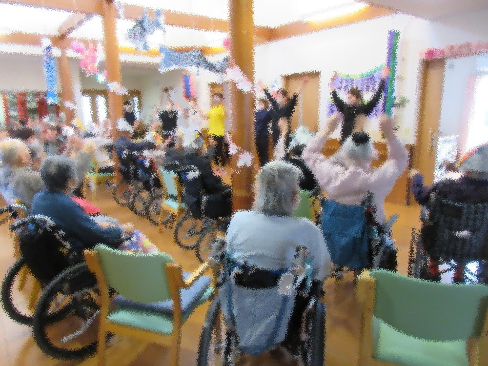 最後はサザエさん家族と「せいくらべ」を歌って5月の誕生会は終わりました! 「楽しかった・いいものが見れた」とみなさんとても喜んで下さったので来月ももっと楽しめるよう工夫していきたいと思います!