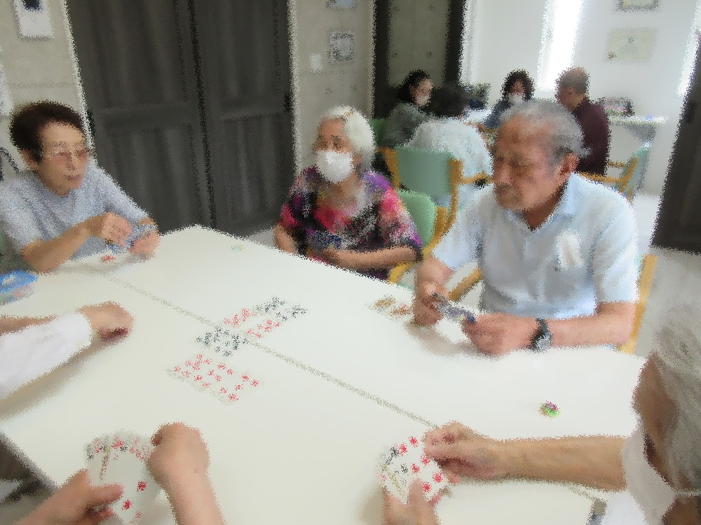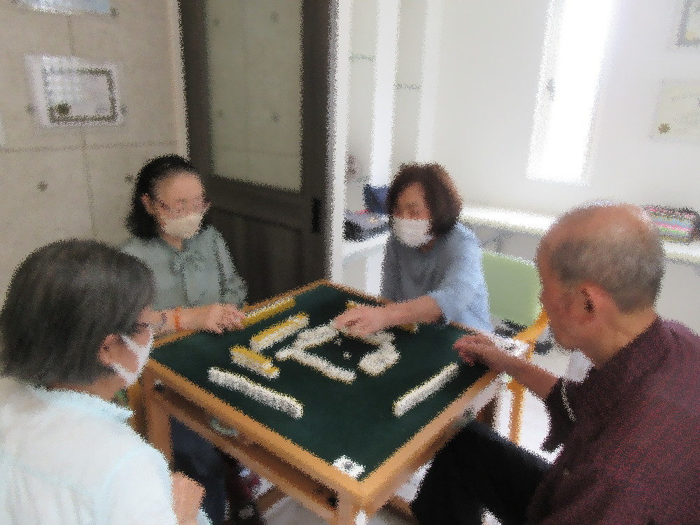 午後からはトランプ2組と麻雀組に分かれて活動し、 トランプ組はババ抜き・七位並べと罰ゲームで歓声をあげるほど賑やかでした(*^_^*) 麻雀組も分からないところは教えてもらいながら、おしゃべりも楽しまれていました!