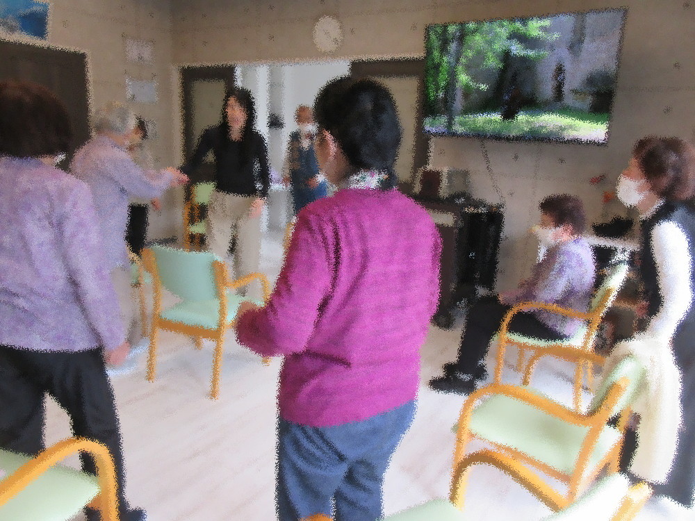 本日のサロンでは社長が体操を行い、まずはゆっくりと深呼吸をしてから全身のストレッチを順番にしました。 ストレッチをしながら社長より自律神経についてお話しがあり、 自律神経が乱れてしまうと体調を崩しやすくなってしまったり眠れなくなってしまったりします。 今回は自身の体と向き合いながら自律神経を整えるようなストレッチを中心に行っていきました。 まずはボールを使ったストレッチと簡単な筋トレからスタート! 一つ一つの動きに対して特に意識したいポイントやどういった効果があるのかを話しつつ、 首から肩・足・足首を順番に丁寧に時間をかけてストレッチしていきました。 後半には少し運動量を増やして座ったまま足踏みをしたり立ち上がってダンスエクササイズをしました。 足踏みも1曲行うとそれなりの運動量になり、ダンスエクササイズでは前回行ったボックスステップをしました! みなさん前回よりも上達され、スムーズにステップを踏まれる方もいました!