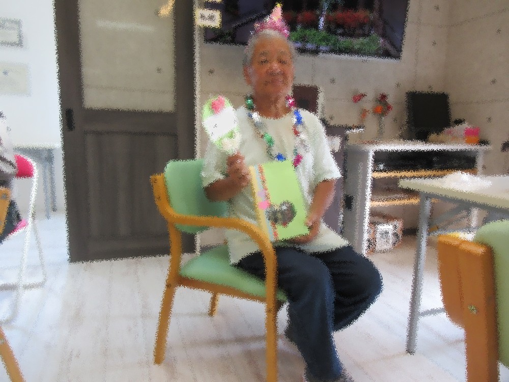 午後からはトランプ組と麻雀組に分かれて活動し、今回は少し早めに終わらせてお誕生会をしました! みなさんでハッピーバースデーの歌でお祝いしていきプレゼントのお菓子を渡しました。 ご本人からお礼の言葉を頂き、「元気に銀河に来たいです」と嬉しい一言も! みなさんでお話ししながら賑やかなおやつの時間を過ごしました。