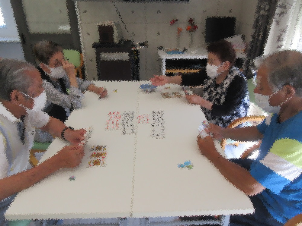 午後からはトランプ2組と麻雀・切り絵組に分かれて活動しました。 久しぶりにサロンでの切り絵教室の開催となり前回に引き続き切り絵に取り組まれる方、 切り絵が気になるようで合間に見に来る方がいらっしゃいました!