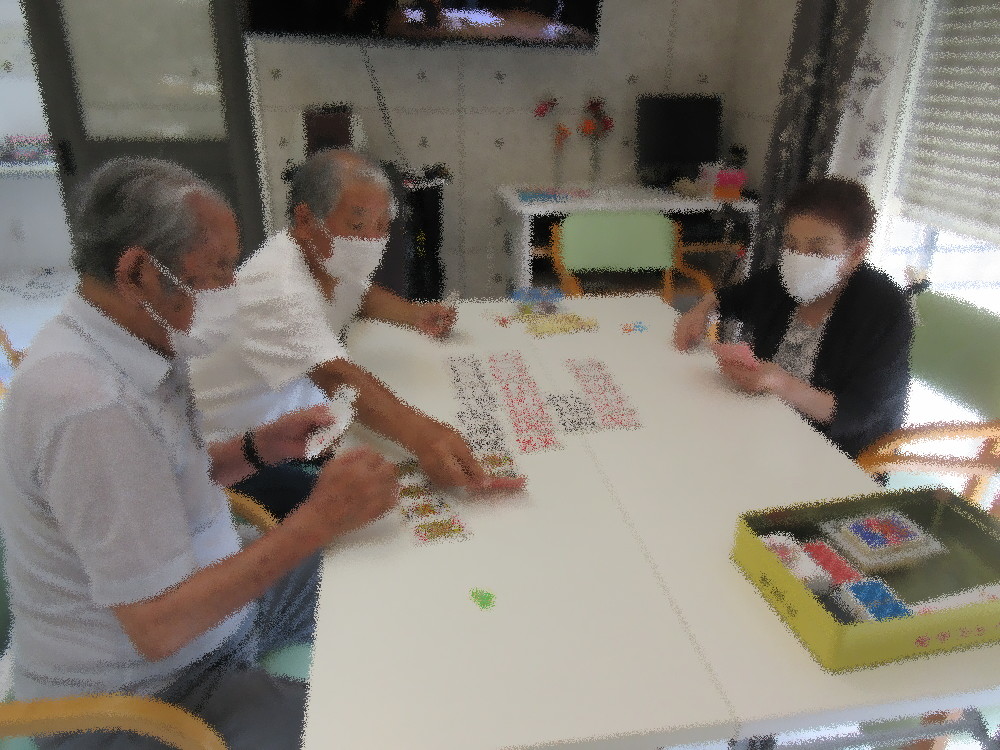 午後からはトランプ3組と麻雀に分かれて活動し、 トランプ組は七並べとババ抜き・麻雀組はアドバイスをもらいながらゲームを楽しまれていました!