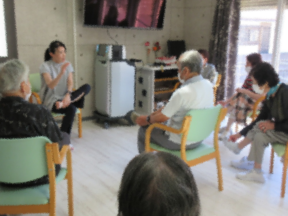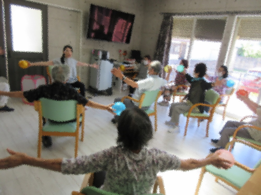 本日はお休みの方が多くいらっしゃいましたが、新しく1名の方が参加されました! 体操は社長が行い、ゆっくりとしたストレッチから始まって全身をほぐしていき 特に足先を重点的に動かし全身を支える足先や足の裏などを丁寧にマッサージしました。 指先もしっかりと開いたり回したりして動かしていき、 自分の大切な足なのでお家でもマッサージするよう勧めていきました。 体操も後半にかけて徐々に運動量を増やしていき、 ボールを使ってみなさんも知っている歌謡曲に合わせて歌いながら楽しくエクササイズをしていきました。