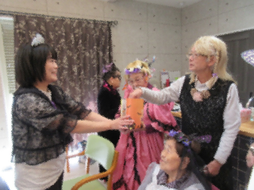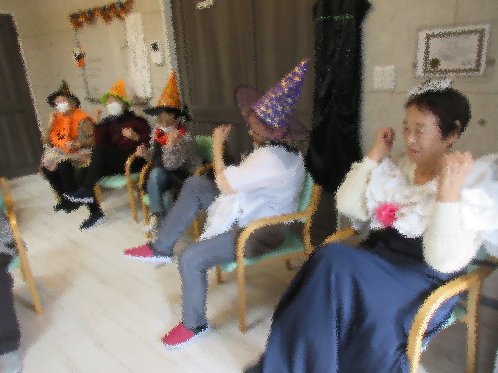 水分補給をしてからカラオケタイムとなり、今日はこのまま…と仮装のままカラオケを楽しまれていました! 午後からは3組に分かれてトランプをして過ごされ、おやつの時間にお土産としてハロウィンのお菓子をお配りしました。 「楽しかった」と言ってくださる方がたくさんいらっしゃり、今後もこういったイベントを考えていきたいと思います!