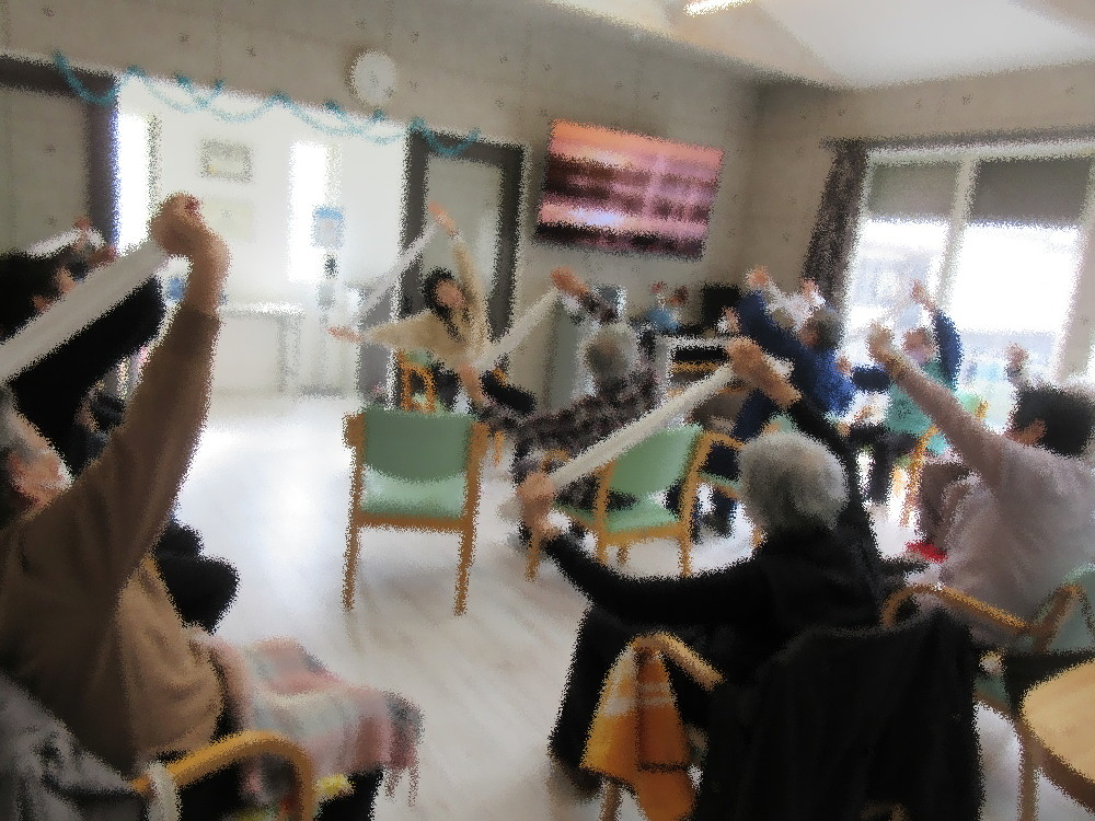 本日のふれあい交流サロンRUBYでは社長が体操を行いました! 木曜日のサロンの方々は社長の体操を受ける事が少ないので始まる前から緊張が感じられます。 まずは肩回しや肩甲骨を寄せるストレッチ・鎖骨のマッサージと肋骨を意識しながら深呼吸と 普段アップテンポな体操が多いので自分の体と向き合いながらゆっくりとした体操に真剣に取り組まれていました。 足先まで全身のストレッチが終わるとボールを足の間に挟んで息を吐きながら潰し、 社長が一人一人回ってきちんと潰せているか確認していきました。 内ももにある内転筋の筋トレは尿漏れ・失禁にとても効果的で、外ももは歩いているだけである程度使いますが 内ももは自分で動かさないとなかなか使われない筋肉ですので今回はそこを意識しながらしっかりと鍛えていきました。 またボールを手に持って肩周りの運動の後、タオルを使って更に上半身を動かしていきます。 腕を後ろ・前・上に動かすだけでも肩が十分に動かされ終わる頃には暑さを感じるほどになり全身が温まっていました!
