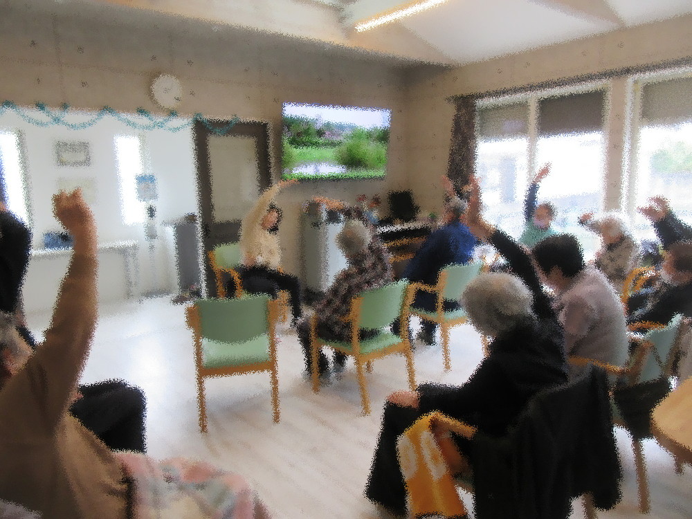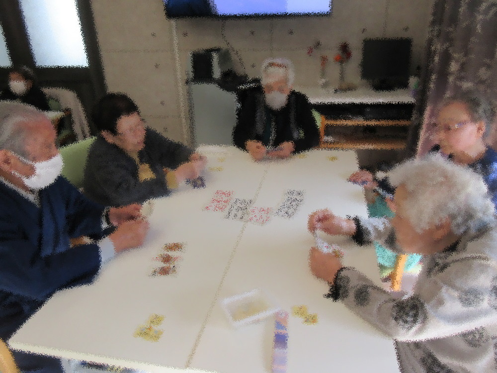 水分補給をした後はカラオケタイム! お気に入りの曲をそれぞれ披露してくださり今日はお休みが多かったので2曲歌う方もいました! 午後からは3組に分かれてトランプして過ごされ、とてものんびりとした穏やかな雰囲気の中で ゲームよりおしゃべりに夢中になりながらゆったりとした時間を過ごされていました。