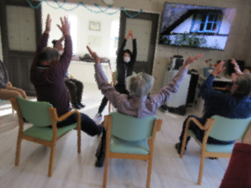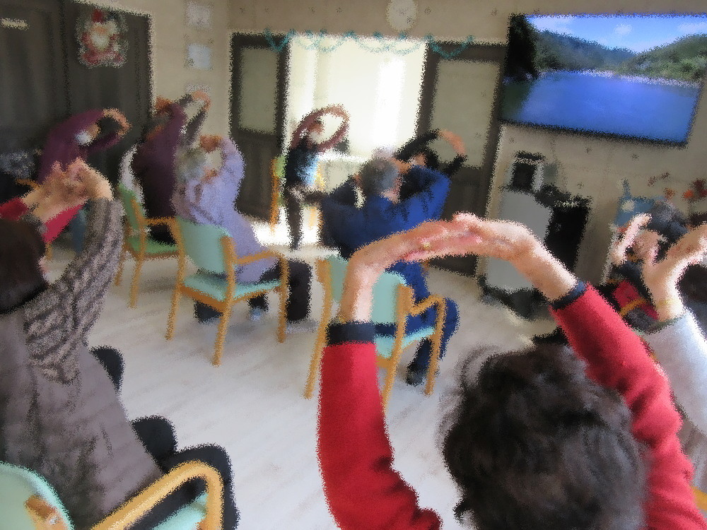 本日のサロンは社長が体操を行いました! まずは肩周りの体操から始まり、首と肩甲骨のストレッチをしてから 脇から下を伸すストレッチをしていきました。 ゆっくりと自分の体を向き合いながら全身をほぐしてからダンスエクササイズ! 「伊勢佐木町ブルース」に合わせて体を動かしていき、間奏では歌に合わせて胸を開くポーズまで! 始めは恥ずかしがっている方もいらっしゃいましたが最近ではノリノリで行っています(^_^)v 最後は「見上げてごらん」を手話をしながら体操していきました。 リラックスしてゆったりと音楽に合わせて体操をしていくうちに亡くなった飼い犬を思い出して泣いてしまう方も…。 自身の心と向き合いながらの体操となりました。