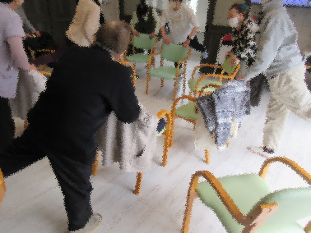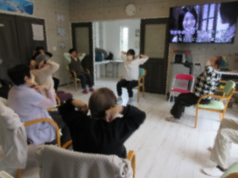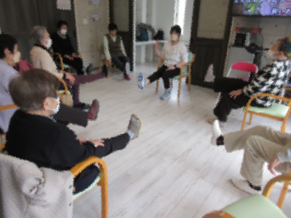 本日もゆっくりとストレッチからスタート! 肩回しや肩甲骨の体操で上半身を動かしていき、踵上げやつま先上げ・足上げの体操も行いました。 座ったまま足踏みから徐々に早くして駆け足をして、立ち上がって更に鍛えていきます。 踵上げと左右と後ろに足上げをしていき、スクワットの体制で3秒キープと5秒キープをこなしていました。 座って深呼吸で呼吸を整えてから指先の体操をして最後は記憶クイズの答え合わせ! 覚える物は毎回変わっていますが繰り返し行っているのでみなさんも覚えられるようになり、 今回は全員がほどヒントなしで答えられていました! お互いに「よく覚えてたね!」と褒め合いながら記憶クイズを成功させていました!